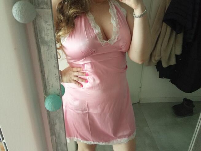 Urocza jasnoróżowa sukienka satynowa z koronką w rozmiarze XL. Nowa. Wysyłka paczką pocztową 16 zł.